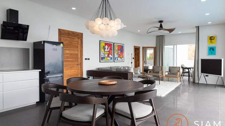 Die Villa besteht aus 3 Schlafzimmern, einem Wohnzimmer und einer voll ausgestatteten Küche, die mit einem Kühlschrank und einer Kaffeemaschine eingerichtet ist. Es gibt insgesamt 3 Badezimmer, die mit einer Dusche und einem Haartrockner ausgestattet sind. Die Unterkunft bietet zudem Handtücher und Bettwäsche. Für die Bequemlichkeit der Gäste sind auch Klimaanlage sowie kostenfreies Internet über Wifi vorhanden.