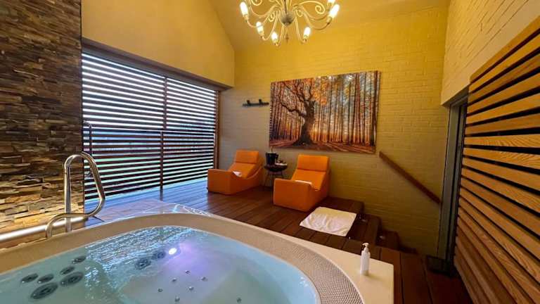 In der Unterkunft befinden sich ein Innenpool sowie Wellness-Einrichtungen wie eine Sauna, ein Whirlpool und ein türkisches Dampfbad. Die Gäste können sich in der Wellnesslounge entspannen und haben Zugang zu Sonnenliegen.