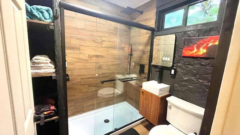 Die Unterkunft im Off-Grid Getaway with Ocean Views in Paradise bietet komfortable Zimmer mit einer gut ausgestatteten Küche, die mit einem Kühlschrank, einer Mikrowelle und einem Kochfeld ausgestattet ist. Das Badezimmer verfügt über eine Dusche mit kostenfreien Pflegeprodukten und einem Haartrockner. Genießen Sie den Komfort von kostenfreiem WLAN und Zimmerservice, während Sie sich in dieser privaten Unterkunft entspannen.