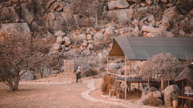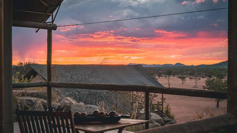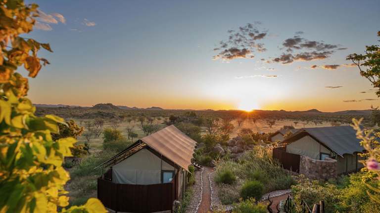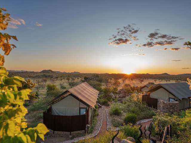 Gelegen in der westlichen Region des Ohorongo-Reservats, lädt das Zeltcamp zu unvergesslichen Naturerlebnissen ein. Die landschaftliche Umgebung bietet faszinierende Savannen und Schluchten. Ruhige Lage im Naturschutzgebiet. Entfernungen: Flughafen Hosea Kutako International Airport ca. 490 km (Fahrzeit ca. 6 Stunden), nächster Ort Outjo ca. 123 km (Fahrzeit ca. 1,5 Stunden), nächster Ort Otjiwarongo ca. 180 km (Fahrzeit ca. 2 Stunden).