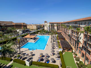 Das Hotel Ohtels Islantilla verfügt über verschiedene Außenpools, darunter auch einen Kinderpool. Entspannen Sie auf den Terrassen und Liegestühlen oder genießen Sie eine Erfrischung an der Pool-/Snackbar. Der Spa-Bereich bietet einen großen Innenpool, einen Thermalstromkreis, einen Whirlpool, ein Türkisches Bad und einen Fitnessraum. Es werden auch verschiedene Aktivitäten angeboten, wie Radfahren, Tennis, Minigolf, Golfen, Reiten und Wassersportarten wie Jetskifahren und Segeln. Im Wellnessbereich können Sie sich bei Massagen und Schönheitsanwendungen verwöhnen lassen. Ein Animationsprogramm, ein Miniclub, eine Minidisco und Live-Musik sorgen für Unterhaltung.