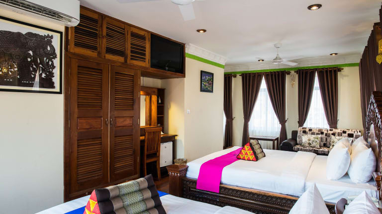Das Okay Palace Hotel in Phnom Penh bietet Ihnen einen komfortablen Aufenthalt in zentraler Lage. Genießen Sie den Außenpool, die Bar und den Seeblick. Das Hotel verfügt über ein Restaurant, eine 24-Stunden-Rezeption und kostenloses WLAN. Die klimatisierten Zimmer sind geräumig und mit modernen Annehmlichkeiten ausgestattet. Beginnen Sie Ihren Tag mit einem leckeren Frühstück und erkunden Sie dann die Sehenswürdigkeiten in der Nähe. Ein Tourenschalter und eine Autovermietung stehen Ihnen zur Verfügung, um Ihren Aufenthalt noch angenehmer zu gestalten.