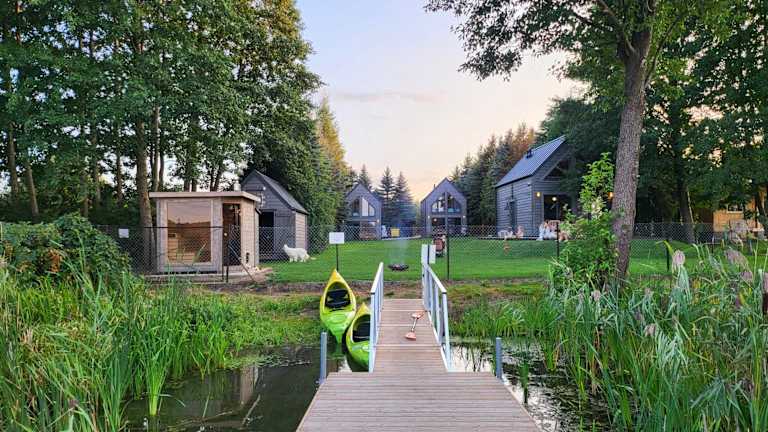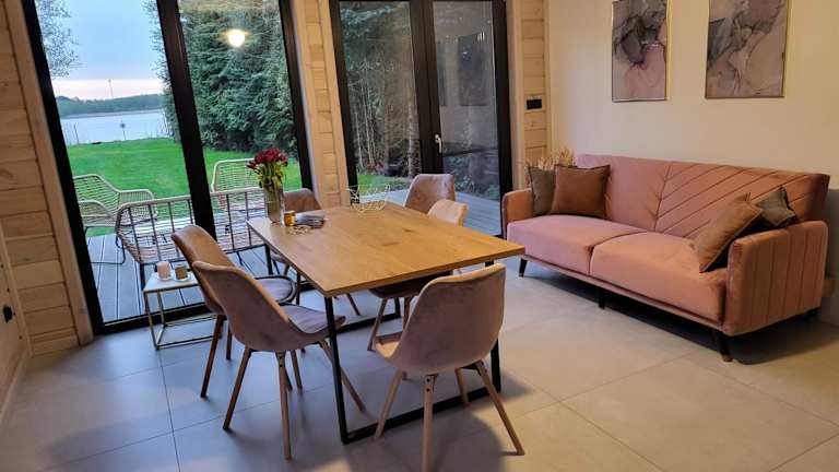 Okno Na Wodę bietet ganzjährig charmante Ferienhäuser mit direktem Zugang zum See und einer Sauna. Die heimelige Umgebung und der eigene Strandbereich verleihen der Unterkunft eine besondere Atmosphäre.