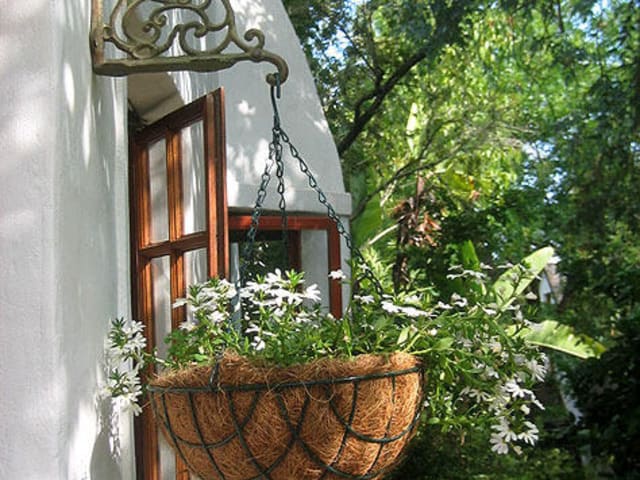 Meine NECTARINE Suite, eine grosse Familiensuite mit separatem Eingang vom Garten und davor gelagerter kleiner Terrasse, einer Lounge mit TV (mit den suedafrikanische Programmen SABC 1,2,3 und e-tv), einem grossen Doppelbett, ueber ein paar Stufen erreicht man eine offene Galerie mit 2 Einzelbetten. Ausserdem bietet die Suite ein Badezimmer mit Bade und Duschmoeglichkeit. und meine APRICOT Suite, ebenfalls mit separatem Eingang vom Garten, unsere Honeymoonsuite mit Doppelbett und TV (mit den suedafrikanische Programmen SABC 1,2,3 und e-tv), sowie natuerlich ensuite Badezimmer mit Dusche und den ORANGE Room, ein Doppelzimmer im Haupthaus, mit grossem Doppelbett (2 Einzelmatrazen) und natuerlich ensuite Badezimmer mit Dusche und den MANGO Room, ein Doppelzimmer mit 2 Einzelbetten im Haupthaus mit ensuite Badezimmer, mit Bade- und Duschmoeglichkeit und meinen LEMON Room, ein Doppelzimmer, ebenfalls im Haupthaus, ausgestattet mit einem Doppelbett und en suite Badezimmer mit Duschmoeglichkeit Alle Zimmer befinden sich in einem NATIONAL MONUMENT (ein denkmal geschuetztes Haus), das wir mit viel Muehe und Ausdauer renoviert haben und weiterhin renovieren. Der ORANGE-, MANGO- und der LEMON Room sind nebeneinander im Haupthaus untergebracht mit einer grossen Lounge in Front, die am Abend mit ihrem offenen Kamin zu einem gemuetlichen Zusammensein einlaedt. Ich serviere Fruehstueck auf der ueberdachten Terrasse vor dem Haupthaus und sollte es uns zu kalt werden, ziehen wir in die grosse Lounge um. Die Fruehstueckskueche ist ebenfalls im Haupthaus untergebracht und steht Ihnen kompl. zur Verfuegung. Ich bereite dort nur Ihr Fruehstueck am Morgen vor.
