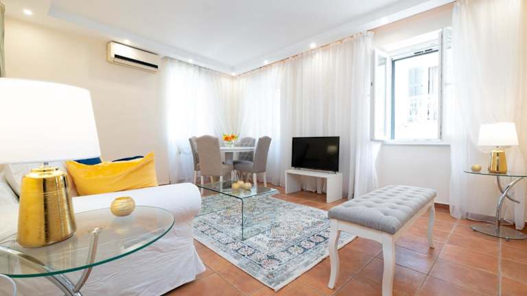 Die Ferienwohnung besteht aus einem Schlafzimmer, einem Wohnzimmer und einer voll ausgestatteten Küche mit Kühlschrank und Kaffeemaschine. Ein Badezimmer ist mit einer Dusche und einem Haartrockner ausgestattet. Handtücher und Bettwäsche werden bereitgestellt. Klimaanlage sorgt für eine angenehme Raumtemperatur.