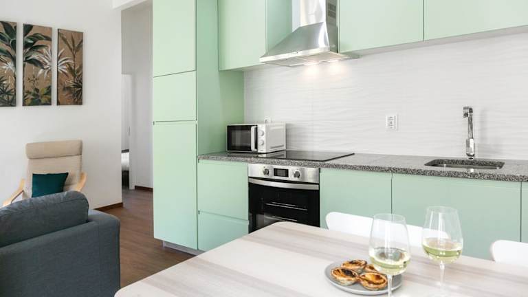 Die Ferienwohnung bietet 2 Schlafzimmer und eine voll ausgestattete Küche. Zudem ist ein Flachbild-TV vorhanden.