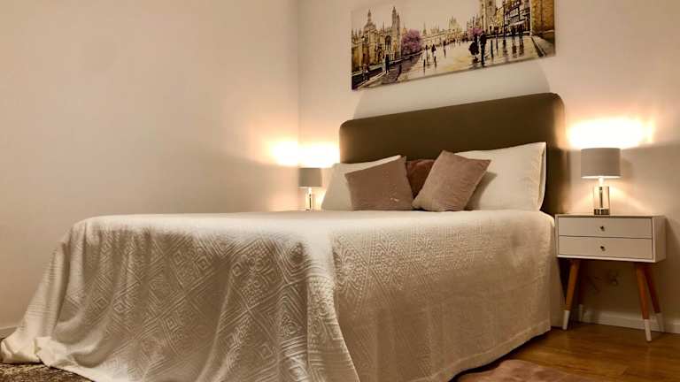 Die Ferienwohnung verfügt über 1 Schlafzimmer und 1 Badezimmer. Zur Ausstattung gehören Bettwäsche, Handtücher, ein Flachbild-TV mit Kabelkanälen, eine voll ausgestattete Küche sowie ein Balkon mit Stadtblick.