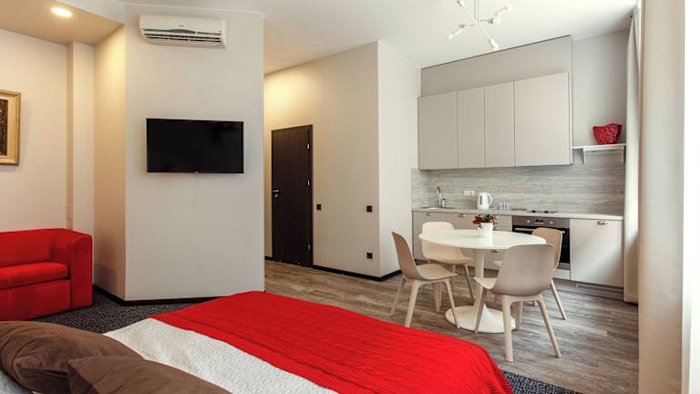Die Apartments sind mit einem Flachbild-TV ausgestattet und verfügen über ein eigenes Badezimmer. Die Schallisolierung sorgt für eine ruhige Atmosphäre, und die Reinigung erfolgt täglich. Haustiere sind nicht gestattet.