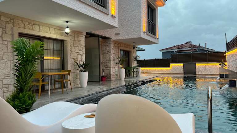 Olea Alacati bietet kostenloses WLAN und verfügt über einen Garten mit einem Außenpool. Die Unterkunft ist eine Nichtraucherunterkunft und weder Junggesellen- noch Junggesellinnenabschiede sind gestattet. Der Check-in ist zwischen 15:00 und 18:00 Uhr möglich, während der Check-out von 08:00 bis 11:00 Uhr erfolgt. Das Mindestalter für den Check-in beträgt 18 Jahre, Haustiere sind nicht erlaubt. Die Unterkunft ist in allen öffentlichen und privaten Bereichen rauchfrei.