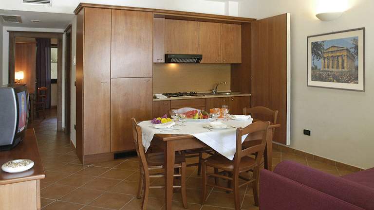 Das Oleandri Resort Paestum ist ein ideales Urlaubsziel für Strandliebhaber und Familien. Mit seiner Lage inmitten eines duftenden Pinienwaldes, nur 250 m vom Meer entfernt und in der Nähe der archäologischen Stätte von Paestum, bietet das Resort eine entspannte Atmosphäre und zahlreiche Annehmlichkeiten. Genießen Sie den großen Außenpool, den Whirlpool und den privaten Strand mit Liegestühlen und Sonnenschirmen. Die Zimmer und Apartments sind modern eingerichtet und klimatisiert, und einige verfügen über eine Küchenzeile. Im hoteleigenen Restaurant können Sie mediterrane Küche und regionale Spezialitäten probieren. Das Resort bietet auch Unterhaltungsmöglichkeiten und ist der perfekte Ausgangspunkt, um die Umgebung zu erkunden.