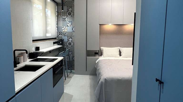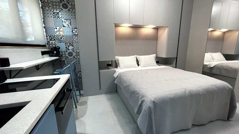 Die Ferienwohnung umfasst zwei Schlafzimmer, ein Wohnzimmer und eine voll ausgestattete Küche mit Kühlschrank und Kaffeemaschine. Zudem stehen ein Badezimmer mit Bidet und Dusche sowie eine Terrasse zur Verfügung. Handtücher und Bettwäsche werden bereitgestellt.