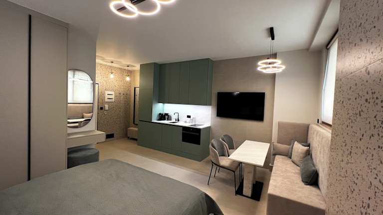 Die oli golden beach residence verfügt über einen saisonalen Aussenpool, einen Garten und einen eigenen Strandbereich. Es handelt sich um eine Ferienwohnung mit kostenlosem WLAN und Blick auf die Stadt.