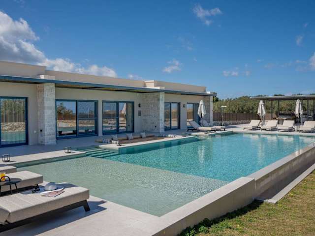Die Zimmer der Villa bieten eine komfortable und helle Atmosphäre mit Meerblick. Die Ausstattung umfasst eine voll ausgestattete Küche mit Kühlschrank und Kaffeemaschine, sowie eine bereitgestellte Auswahl an Handtüchern und Bettwäsche. Jedes der 5 Schlafzimmer ist geschmackvoll eingerichtet und bietet genügend Platz für einen erholsamen Aufenthalt.