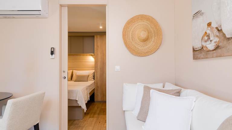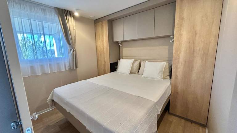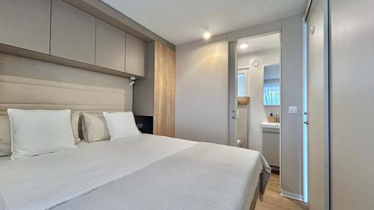 Die Unterkünfte sind klimatisiert und verfügen über ein eigenes Bad sowie eine gut ausgestattete Küche mit Mikrowelle und Kühlschrank. Zudem bieten die Mobilhomes einen Sitz- und/oder Essbereich, der für Bequemlichkeit sorgt.