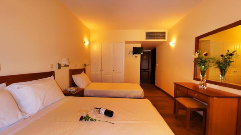 Jedes Zimmer im Olympios Zeus Hotel ist mit einem Schreibtisch, einem Flachbild-TV, einem eigenen Badezimmer sowie Bettwäsche und Handtüchern ausgestattet. Die Gästezimmer sind zudem mit einem Kühlschrank versehen.