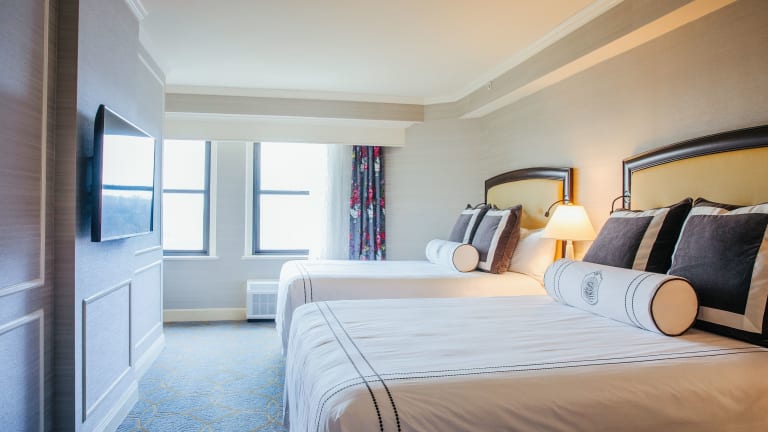 Die Zimmer im Omni Shoreham Hotel sind geschmackvoll und komfortabel eingerichtet. Ein Deluxe Doppelzimmer mit ca. 27 m² bietet zwei Doppelbetten oder ein King Size Bett, sowie Annehmlichkeiten wie Klimaanlage, Safe, Fernseher, und eigenes Bad mit Bademantel und Föhn. WLAN ist gegen Gebühr verfügbar.