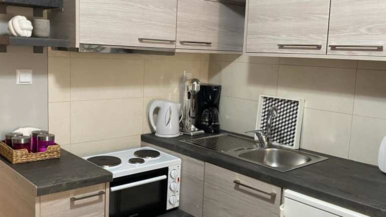 Das Studio verfügt über ein Schlafzimmer, ein Wohnzimmer sowie eine voll ausgestattete Küche mit Kühlschrank und Kaffeemaschine. Ein Badezimmer mit Dusche und kostenlosen Pflegeprodukten ist ebenfalls vorhanden. Handtücher und Bettwäsche werden zur Verfügung gestellt. Internetzugang, Klimaanlage und ein Aufzug sind ebenfalls vorhanden.