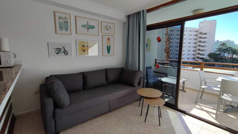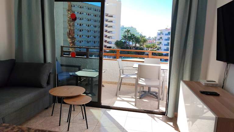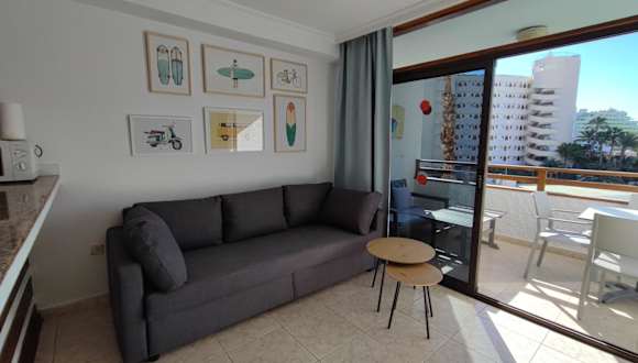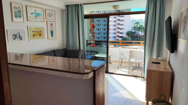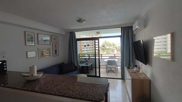 Das one bedroom apartment in Playa del Ingles verfügt über einen Balkon mit Stadtblick, einen Aussenpool sowie eine Terrasse.