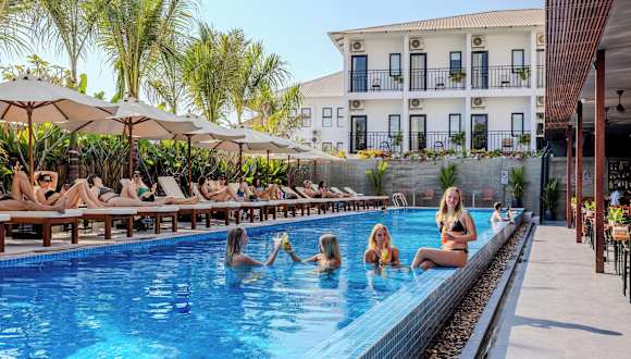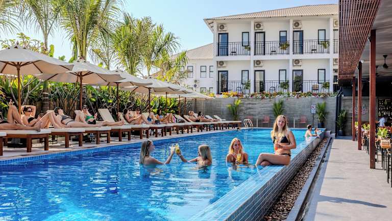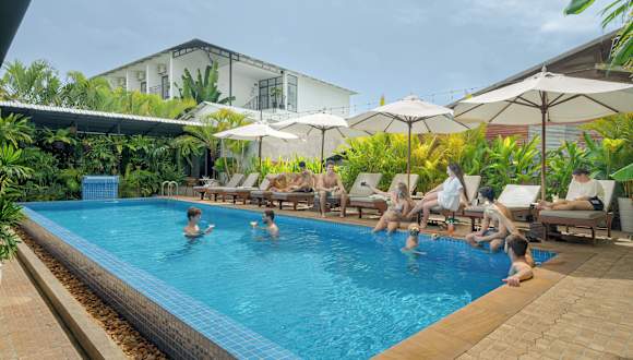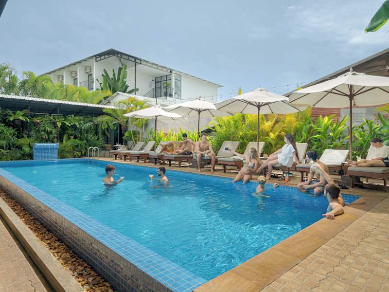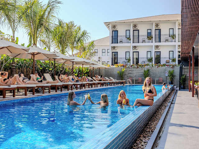 Das Onederz Hostel Siem Reap bietet ein modernes Hostel-Erlebnis mit einer freundlichen Atmosphäre. Die Unterkunft verfügt über einen Dachpool mit Blick auf den Sonnenuntergang, zwei Schwimmbecken und ein Restaurant vor Ort. Die Rezeption ist rund um die Uhr geöffnet und das Personal spricht mehrere Sprachen, darunter Englisch und Khmer. Es stehen zahlreiche Annehmlichkeiten zur Verfügung, darunter kostenfreies Wifi und kostenlose Privatparkierung.