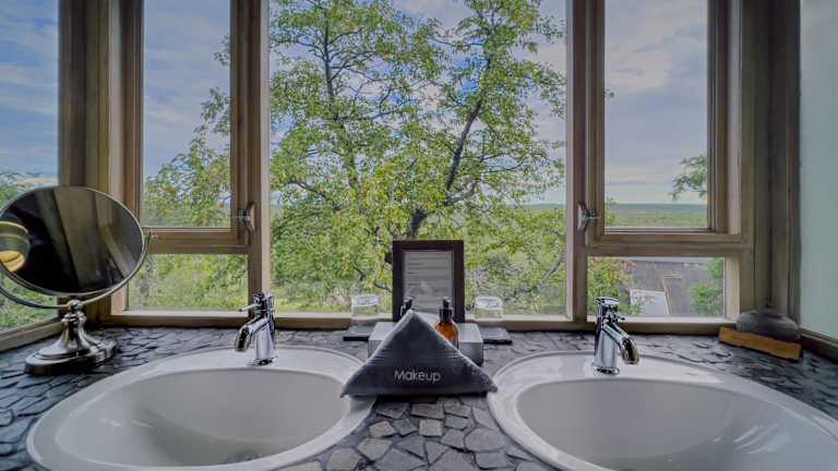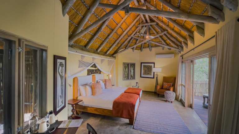 Die luxuriösen Suiten der Ongava Lodge sind klimatisiert und bieten einen komfortablen Sitzbereich sowie einen Balkon. Die Unterkünfte sind in Chalets aus Stein und mit Strohdächern untergebracht und bieten einen atemberaubenden Panoramablick auf das Wasserloch des Camps. Die Badezimmer verfügen über eine Dusche und einen Haartrockner.