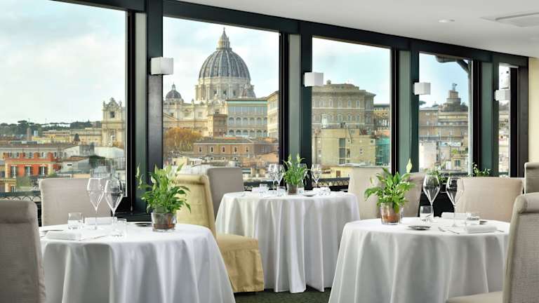 Das Frühstück wird auf den oberen Etagen mit Panoramablick auf St. Peters serviert.