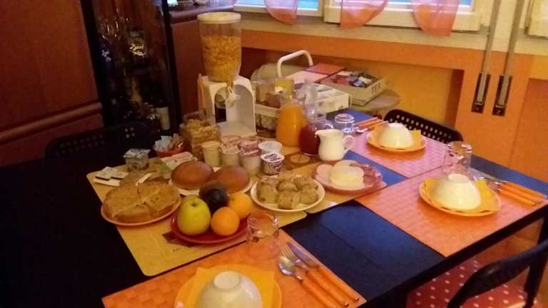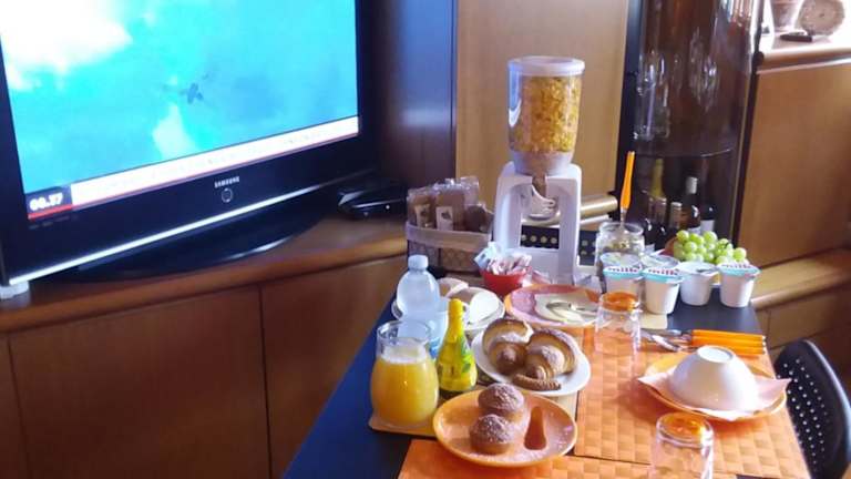 Beim Frühstück haben die Gäste die Möglichkeit, aus einem Buffet mit kontinentalen oder italienischen Optionen zu wählen. Zudem besteht die Möglichkeit, sich Gerichte in die Unterkunft liefern zu lassen.