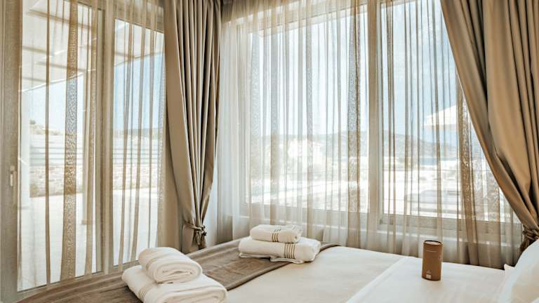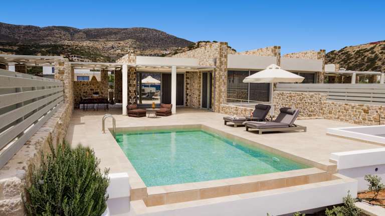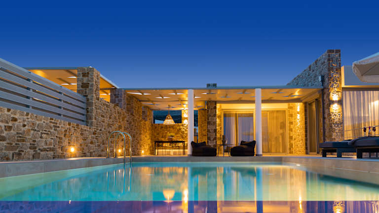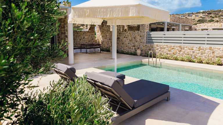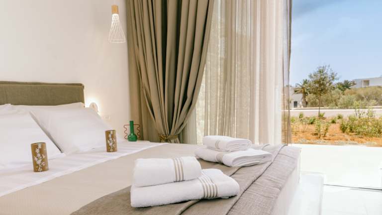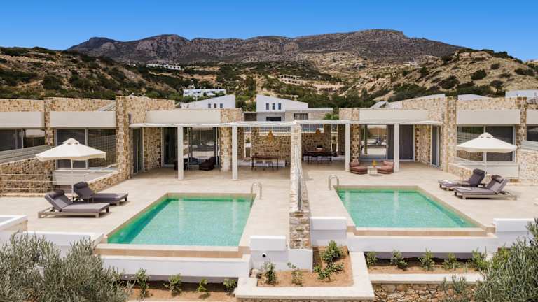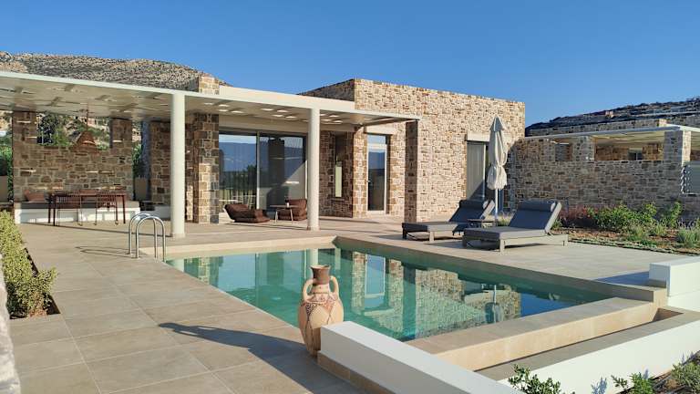 A refuge of absolute peace and relaxation with a contemporary design, in a privileged position with panoramic views, perfectly set in the uncontaminated nature of Karpathos. Each villa is an oasis of discreet elegance, with large, bright spaces, attention to detail and an outdoor area with a private swimming pool to enjoy, to offer an unforgettable stay. Car rental is recommended to discover the wonders of the island. In a panoramic position, Orelia Luxury Villas is located a short distance from the enchanting bay of Amoopi. The airport is about 11 km away, while the center of Pigadia and its port is about 6 km. Built in 2023, the complex consists of 6 independent villas in natural stone, with contemporary architectural lines. The location is perfect both for enjoying the view in absolute privacy and tranquility, and as a starting point for exploring the island, given the proximity to some of the most beautiful beaches of Karpathos, including the splendid Pera Ammos, the closest, about 250 m away, sandy and with crystal clear waters. Sunbeds, umbrellas and beach towels available to guests at the private pools of the villas.