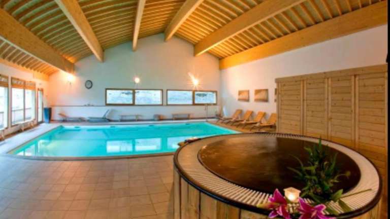 Orelle - Val Thorens, le Hameau des eaux - SPA & piscine bietet eine ansprechende Ferienwohnung mit Garten, Restaurant und einem umfangreichen Spa- und Wellnesszentrum. Die Gäste können sich auf eine entspannende Atmosphäre freuen, ergänzt durch modernes Design und praktischen Annehmlichkeiten. Der Privatparkplatz ist kostenlos.