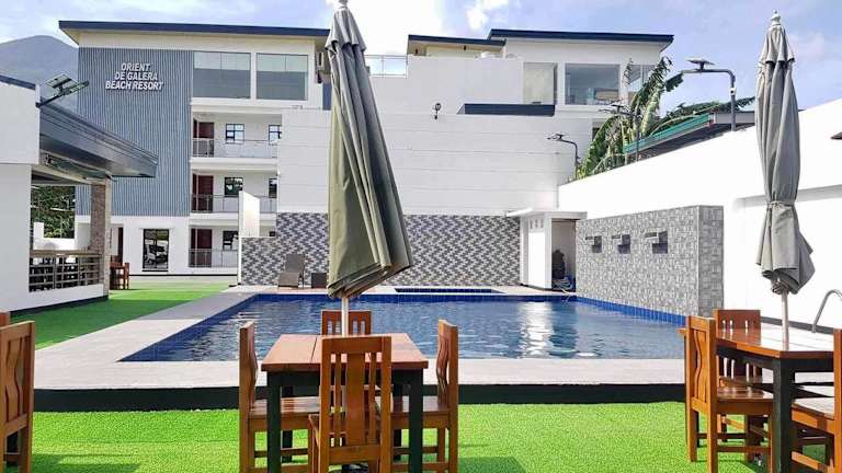 Das Orient De Galera Beach Resort bietet Übernachtungsmöglichkeiten mit einem Restaurant und einem kostenlosen Privatparkplatz. Die Unterkunft verfügt über einen Aussenpool und klimatisierte Zimmer mit kostenlosem Wifi, die mit einem eigenen Badezimmer ausgestattet sind. Ein Zimmerservice sowie eine rund um die Uhr besetzte Rezeption stehen den Gästen zur Verfügung.