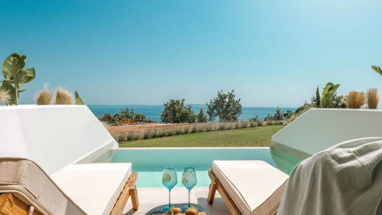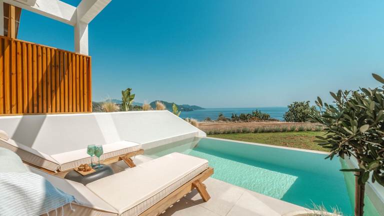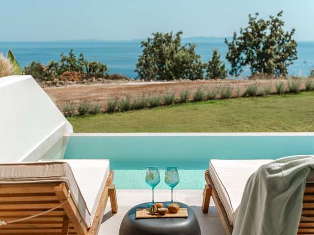 Die Zimmer in den Orizontas Suites sind mit einem Balkon und Meerblick ausgestattet. Jedes Zimmer verfügt über einen Sitzbereich, einen Flachbild-TV sowie eine voll ausgestattete Küche mit Kühlschrank, Ofen und weiteren Annehmlichkeiten. Ein eigenes Badezimmer mit Dusche und kostenlosen Pflegeprodukten ist ebenfalls vorhanden.