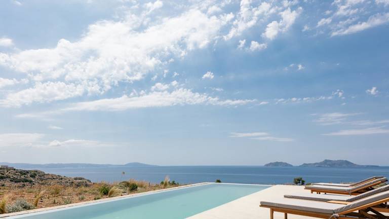 Die Unterkunft Orizontes Villa, Tranquil SeaView Living, By ThinkVilla, bietet eine ruhige Umgebung mit Meerblick. Sie ist ausgestattet mit einem saisonalen Außenpool, einem Garten sowie einer Terrasse und ermöglicht einen komfortablen Aufenthalt.