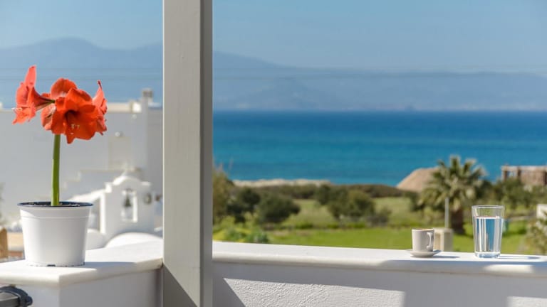 Orkos Naxian Wave bietet Übernachtungsmöglichkeiten direkt am Strand mit kostenlosem WLAN, Klimaanlage und Zugang zu einem Garten und einem Balkon. Die Unterkunft ist ideal für einen entspannten Aufenthalt am Meer.