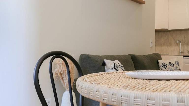 Die klimatisierte Ferienwohnung besteht aus 1 Schlafzimmer, einem Wohnzimmer und einer voll ausgestatteten Küchenzeile mit Kühlschrank und Wasserkocher. Zudem gibt es 1 Badezimmer mit Dusche und Haartrockner. Handtücher und Bettwäsche werden bereitgestellt.