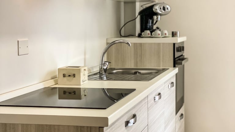 Die Ferienwohnung besteht aus einem Schlafzimmer, einem Wohnzimmer sowie einer voll ausgestatteten Küche, die mit einem Kühlschrank und einer Kaffeemaschine ausgestattet ist. Es gibt zudem zwei Badezimmer, wovon eines mit einem Bidet und einer Dusche versehen ist. Handtücher und Bettwäsche werden zur Verfügung gestellt. Internet kann in allen Bereichen genutzt werden.