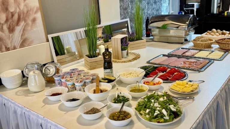 Die Unterkunft Ośrodek Wczasowy Karat bietet ein Buffet- oder kontinentales Frühstück an, um den Gästen einen geschmackvollen Start in den Tag zu ermöglichen. Die Gemeinschaftsküche steht den Gästen ebenfalls zur Verfügung, sodass Selbstverpflegung möglich ist.