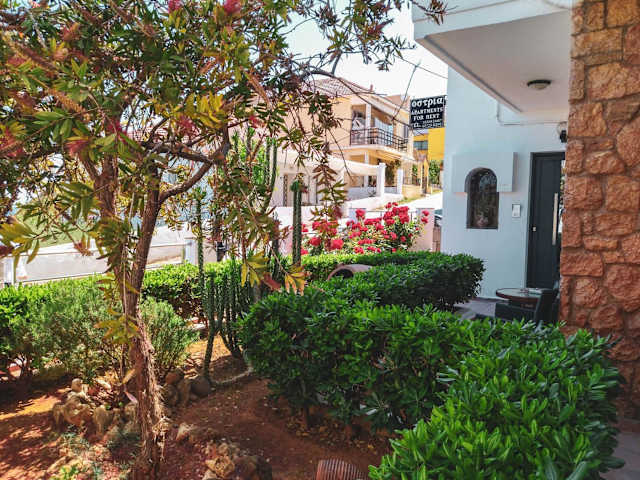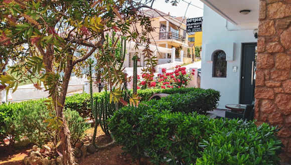 Die Unterkunft Ostria Apartments Kalives bietet eine heimelige Atmosphäre in einem Garten mit Terrasse und Stadtblick. Kostenloses Wifi steht den Gäste zur Verfügung.