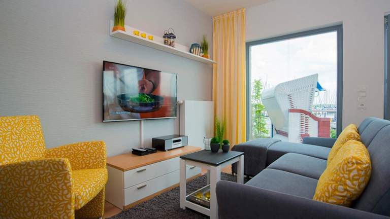 Das Ostsee - Maisonette - Appartement Nr 53 "Schöne Aussicht" im Strand Resort bietet eine gepflegte Atmosphäre mit wunderbarem Meerblick. Die Unterkunft ist mit einer Terrasse und einem Balkon ausgestattet, die den Gästen ermöglichen, die schöne Landschaft zu geniessen. Kostenfreies Wifi ist in der gesamten Anlage verfügbar und ein Privatparkiermöglichkeit steht ebenfalls zur Verfügung.