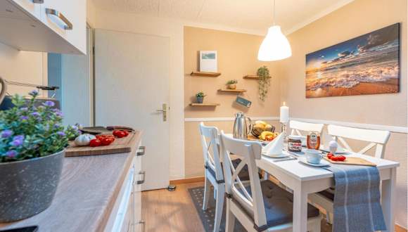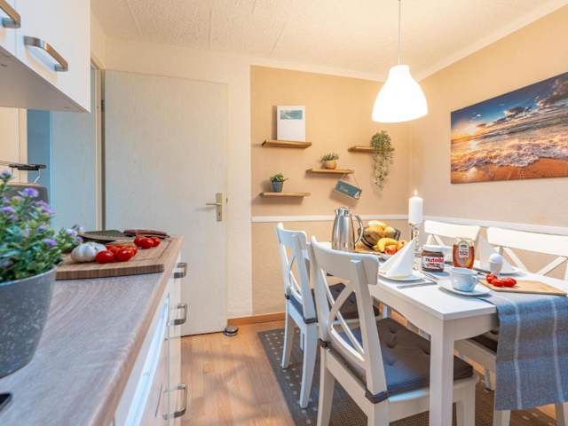 Die Ferienwohnung verfügt über ein Wohnzimmer sowie eine voll ausgestattete Küche, ausgestattet mit Kühlschrank und Mikrowelle, die den Gästen eine angenehme Selbstversorgung ermöglichen. Die Unterkunft bietet eine heimelige Atmosphäre und eine ansprechende Ausstattung.