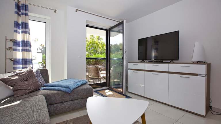 Ostseetraum 04 - Aquamarin bietet eine gemütliche Ferienwohnung, die ideal für einen erholsamen Aufenthalt ist. Die Unterkunft ist mit einem Balkon ausgestattet und umfasst ein Schlafzimmer sowie ein Wohnzimmer. Eine gut ausgestattete Küche ermöglicht es, eigene Mahlzeiten zuzubereiten. Die Atmosphäre der Unterkunft ist heimelig und einladend.