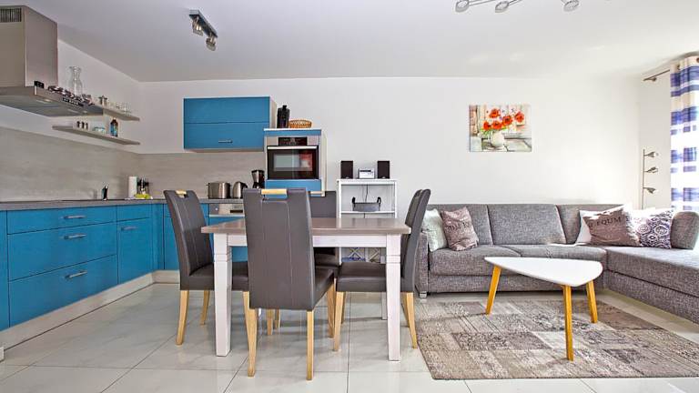 Die Ferienwohnung ist mit einer gut ausgestatteten Küche versehen, die einen Kühlschrank und einen Geschirrspüler beinhaltet. Somit haben Gäste die Möglichkeit, Selbstverpflegung zu betreiben. Es sind keine Verpflegungsmöglichkeiten vor Ort angegeben.