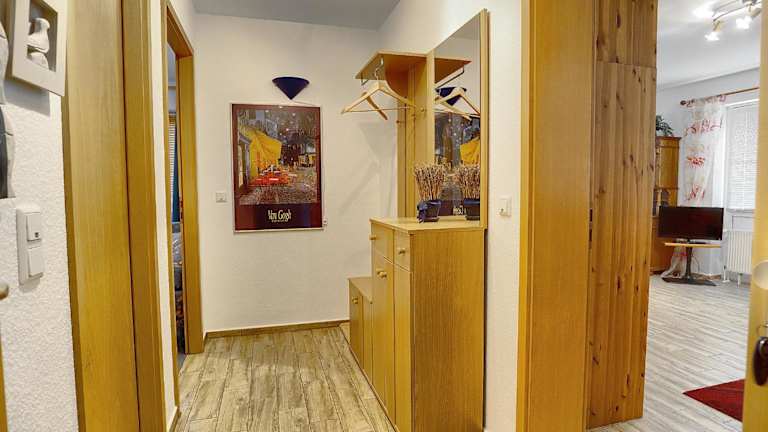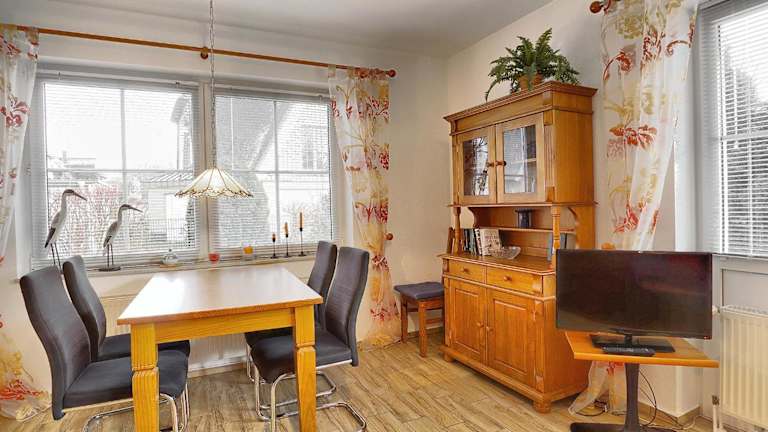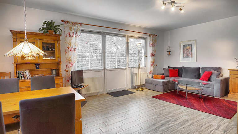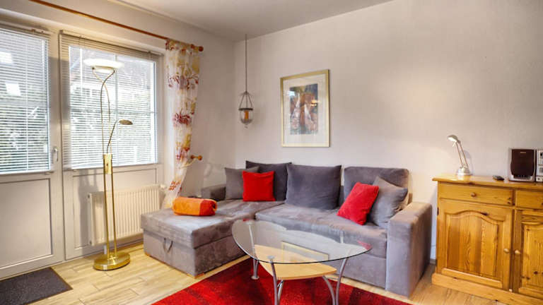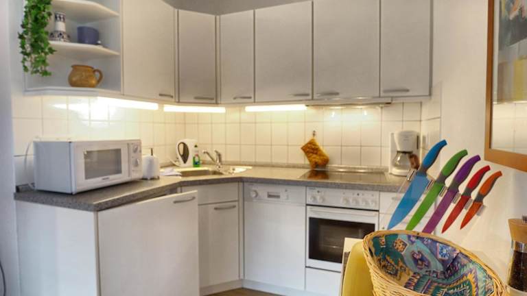 Die Ferienwohnung besteht aus einem separaten Schlafzimmer, einem Wohnzimmer sowie einer voll ausgestatteten Küchenzeile, die einen Kühlschrank und einen Geschirrspüler beinhaltet. Ein Badezimmer ist ebenfalls vorhanden. Auf Anfrage können Handtücher und Bettwäsche gegen Aufpreis zur Verfügung gestellt werden.