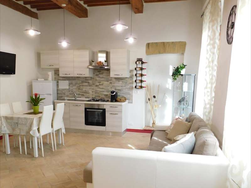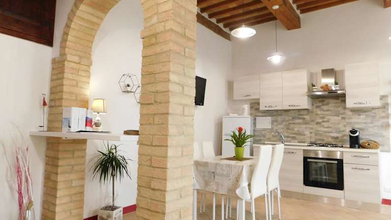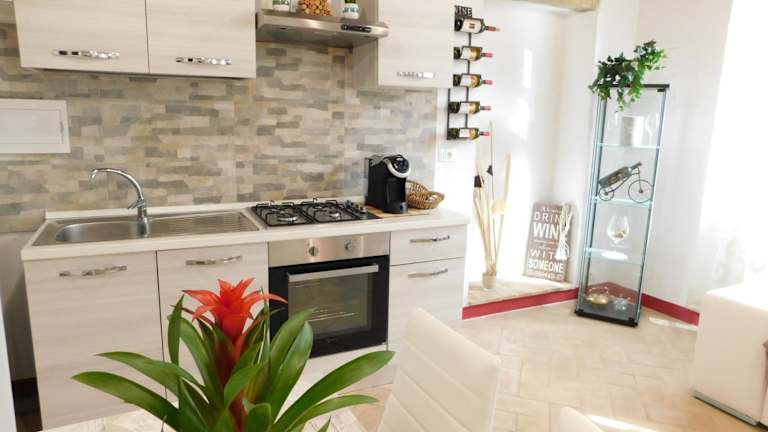 Die Ferienwohnung umfasst ein Schlafzimmer, ein Wohnzimmer und eine voll ausgestattete Küche mit Kühlschrank und Kaffeemaschine. Zudem verfügt sie über ein Badezimmer mit Bidet und Dusche. Ein TV ist ebenfalls vorhanden.