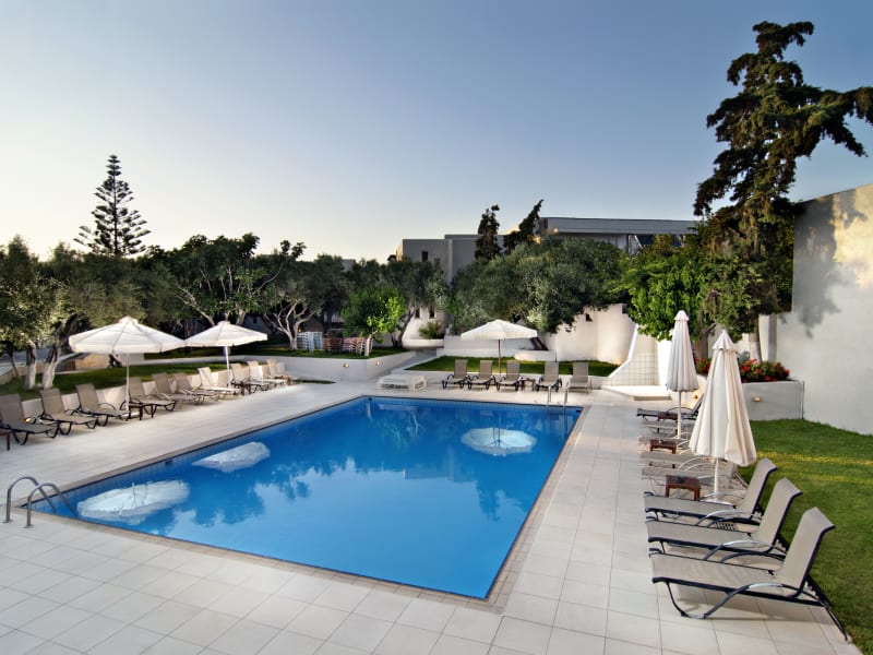 Das Resort wurde in einer "Dorf" -Form für Ihren erholsamen Urlaub gebaut. Es gibt viele Gärten voller Olivenölbäume und mediterraner Blumen, die Ihnen die wahre lokale Atmosphäre Kretas vermitteln. Die Apartments sind geräumig mit eigener Ausstattung und Balkon / Terrasse. Die Geschichte des Hotels begann in den frühen 80er Jahren, als die ersten 4 Apartments gebaut wurden. 4 Villen ... Anfang der 90er Jahre gab es 6 Villen und es war Zeit, sich zu ändern und in ein neues Konzept zu investieren. Der Tourismus wurde zu einem großen Geschäft, aber kleine und elegante Hotels sind die traditionellen Unterkünfte, die dem Kunden das wahre lokale Gefühl vermitteln. In den Jahren 2006-2007 hatten wir ein großes Umbauprojekt, das das Hotel in ein modern aussehendes Resort umgestaltete. 2018 haben wir die neuen Gebäude eröffnet, die das Hotel auf insgesamt 57 Apartments erweitert haben. Die neuen Superior-Apartments verfügen über ein modernes Design und eine erstklassige Ausstattung, die Ihr Urlaubserlebnis noch weiter verbessert. Jedes Jahr geben wir alle Anstrengungen, um Ihren Urlaub so unvergesslich und angenehm wie nie zuvor zu gestalten. Beschreibung der Unterkunft: 57 Wohnungen 3 Studio-Apartments für bis zu 2 Personen 27 Apartments mit einem Schlafzimmer für bis zu 4 Personen 12 Superior Apartments mit einem Schlafzimmer für bis zu 4 Personen 6 Superior Studio Apartments für bis zu 3 Personen 9 Apartments mit zwei Schlafzimmern für 5 Personen