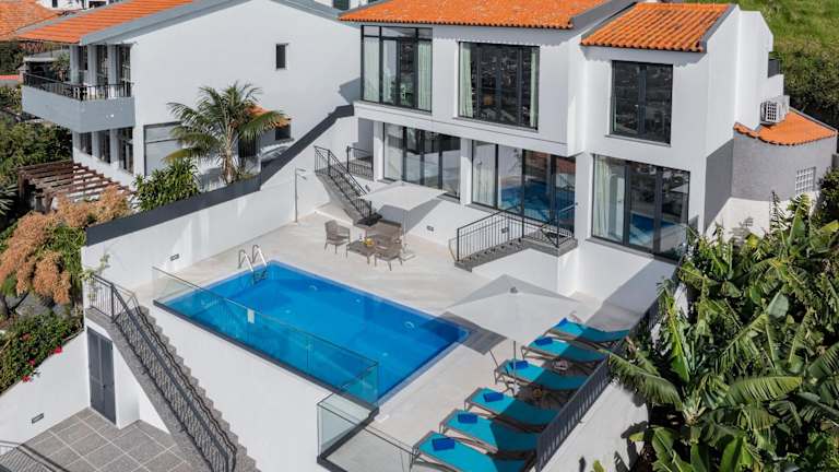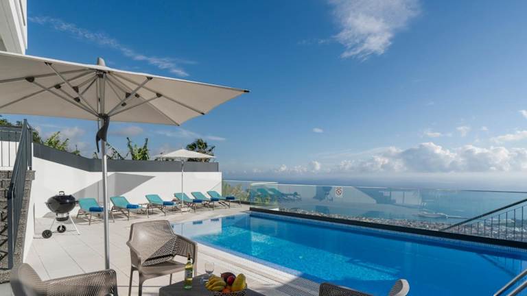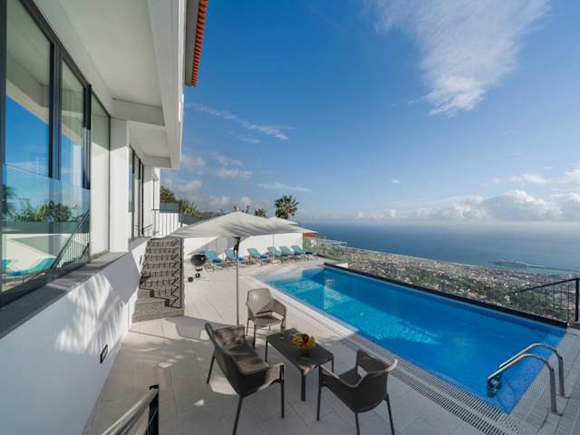 OurMadeira - Monte White House bietet eine klimatisierte Villa mit einem Aussenpool und einer Terrasse mit Meerblick. Die Unterkunft ist geschmackvoll eingerichtet und verfügt über 4 Schlafzimmer und 4 Badezimmer. Zudem sind Bettwäsche und Handtücher vorhanden.