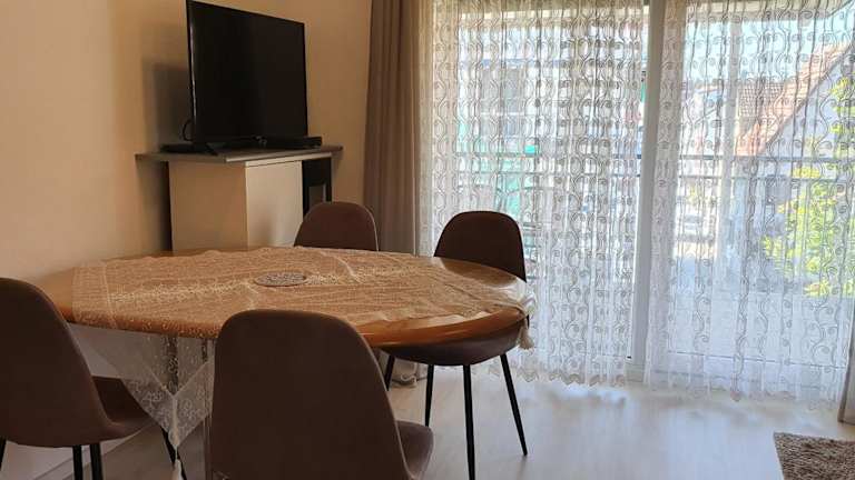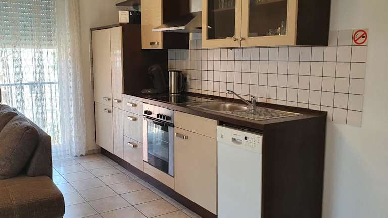 Die Ferienwohnung besteht aus 2 Schlafzimmern, einem Wohnzimmer und einer voll ausgestatteten Küchenzeile mit Kühlschrank und Kaffeemaschine. Ein Badezimmer mit Badewanne oder Dusche sowie ein Haartrockner sind ebenfalls vorhanden. Handtücher und Bettwäsche werden zur Verfügung gestellt.