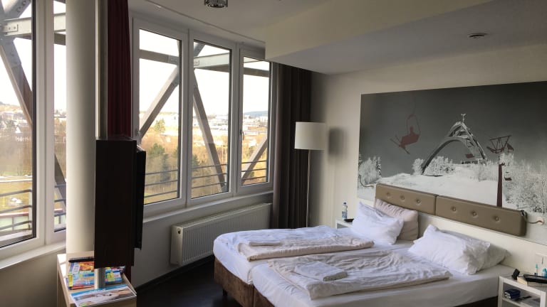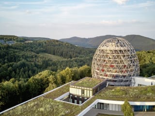 Das architektonisch einzigartige Oversum Vital Resort bietet einen grossen Wellnessbereich, der sowohl einen Innenpool als auch ein Fitnesszimmer umfasst. Die stilvollen Zimmer sind eiförmig gestaltet und verfügen über grosse Fenster, die einen schönen Ausblick bieten.