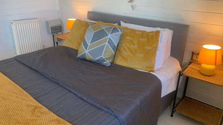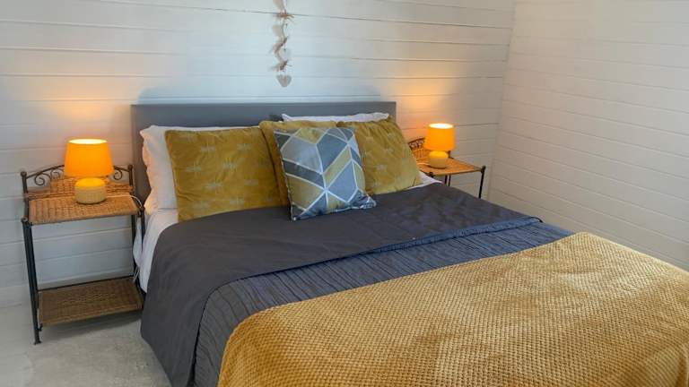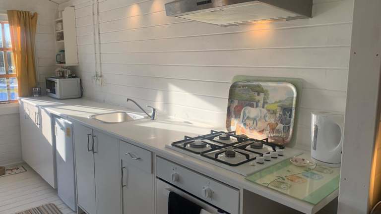 Das Ferienhaus bietet ein Schlafzimmer, ein Wohnzimmer sowie eine gut ausgestattete Küche mit Kühlschrank und Ofen. Das Badezimmer ist mit einer Dusche ausgestattet. Es werden Handtücher und Bettwäsche bereitgestellt. Gäste können die Terrasse mit Gartenblick nutzen.