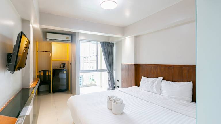 Die Zimmer im A Sleep Bangkok Sathorn sind mit einem Kingsize-Bett ausgestattet und bieten Platz für Zustellbetten. Ein Kühlschrank, ein Schreibtisch und ein Flachbild-TV mit Satellitenkanälen sind ebenfalls vorhanden. Jedes Zimmer verfügt über ein eigenes Badezimmer mit Dusche und Haartrockner. Die Gäste finden dort auch Kosmetikartikel sowie eine Auswahl an Handtüchern vor. Das Hotel bietet sowohl Familien- als auch Nichtraucherzimmer an.
