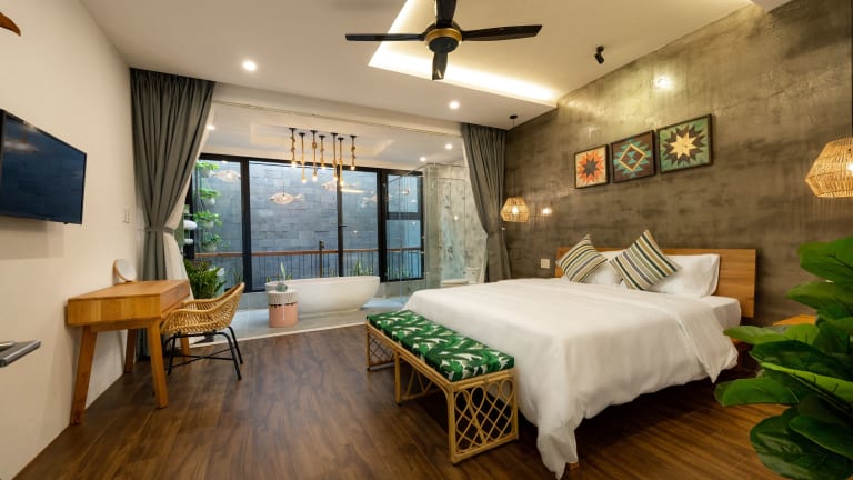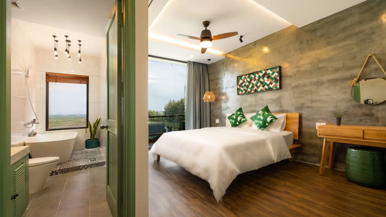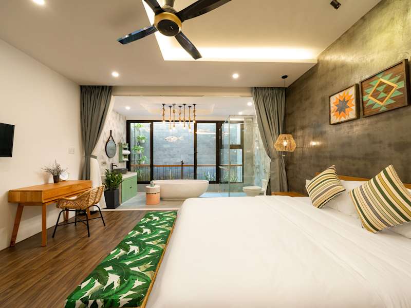 Die Zimmer in Paddy Boutique House Hoian sind mit Klimaanlage, einem Sitzbereich, einem Flachbild-TV mit Kabelkanälen und einem Safe ausgestattet. Jedes Zimmer besitzt ein eigenes Badezimmer mit einem Bidet, kostenlosen Pflegeprodukten und einem Haartrockner. Einige Wohneinheiten verfügen über einen Balkon. Alle Zimmer sind zudem mit Bettwäsche, Handtüchern und einem Wasserkocher ausgestattet.