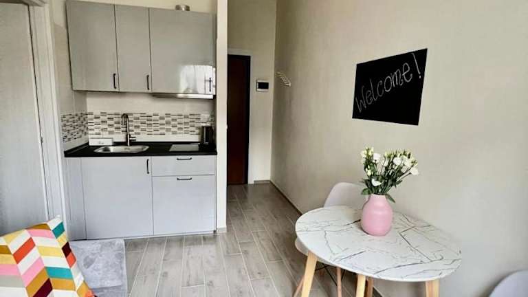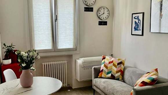 Die Ferienwohnung bietet eine Klimaanlage und besteht aus einem Schlafzimmer, einem Wohnzimmer sowie einer voll ausgestatteten Küche mit Kühlschrank und Kaffeemaschine. Zudem stehen den Gästen ein Badezimmer mit Bidet und Dusche zur Verfügung. Handtücher und Bettwäsche werden ebenfalls bereitgestellt.